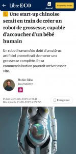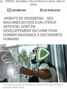 Bien que l’information soit démentie par les sources de TF1 (l’Université technologique de Nanyang affirme qu’ « aucun doctorant nommé Zhang Qifeng n’est sorti diplômé de cet établissement » et « aucune recherche sur un robot de gestation n’a été menée dans les laboratoires de l’université »), l’idée d’un robot de grossesse ne peut pas passer inaperçue.