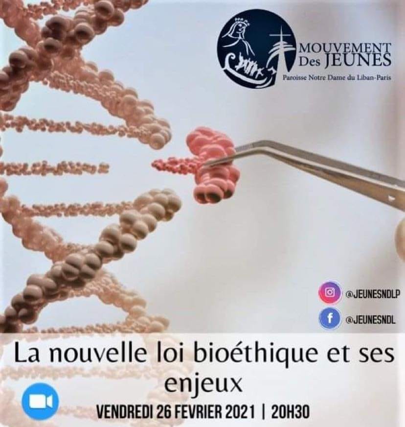 À l’invitation du Mouvement des Jeunes de la paroisse Notre Dame du Liban à Paris, j’ai donné une conférence sur le projet de la nouvelle loi bioéthique et ses enjeux; ceci en faisant une comparaison entre la loi actuelle (2004/2011) et le projet en cours avec une réflexion bioéthique.